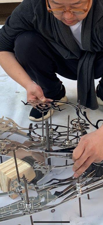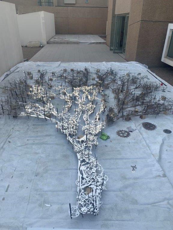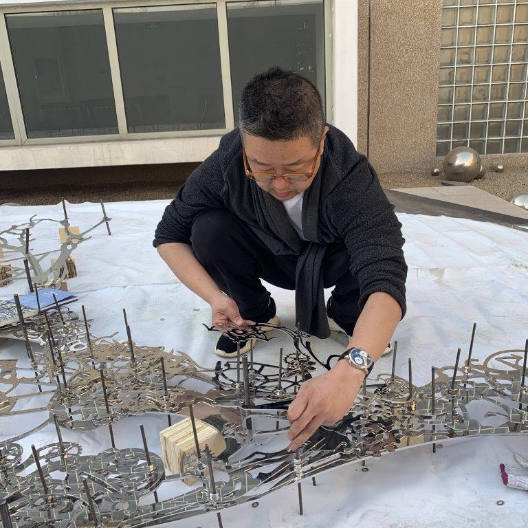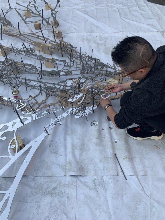 Chinese sculptor Xia Hang has completed the fabrication of his artwork Memory Tree for the New Life development in Ultimo. Assembling it on the roof of his Beijing studio, the 2000 pieces of stainless steel fitted together like a jigsaw puzzle, before being disassembled, wrapped and crated for shipping. The work is to be installed mid June.